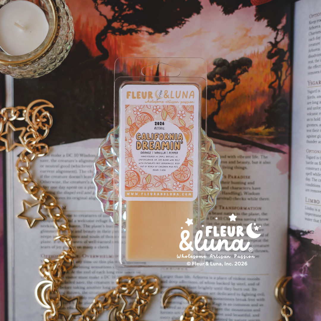 All waxes are made in small batches and hand-poured. Made of natural soy wax and paraffin blend wax, phthalate-free fragrances, ethically sourced mica pigments, & earth friendly sparkles.