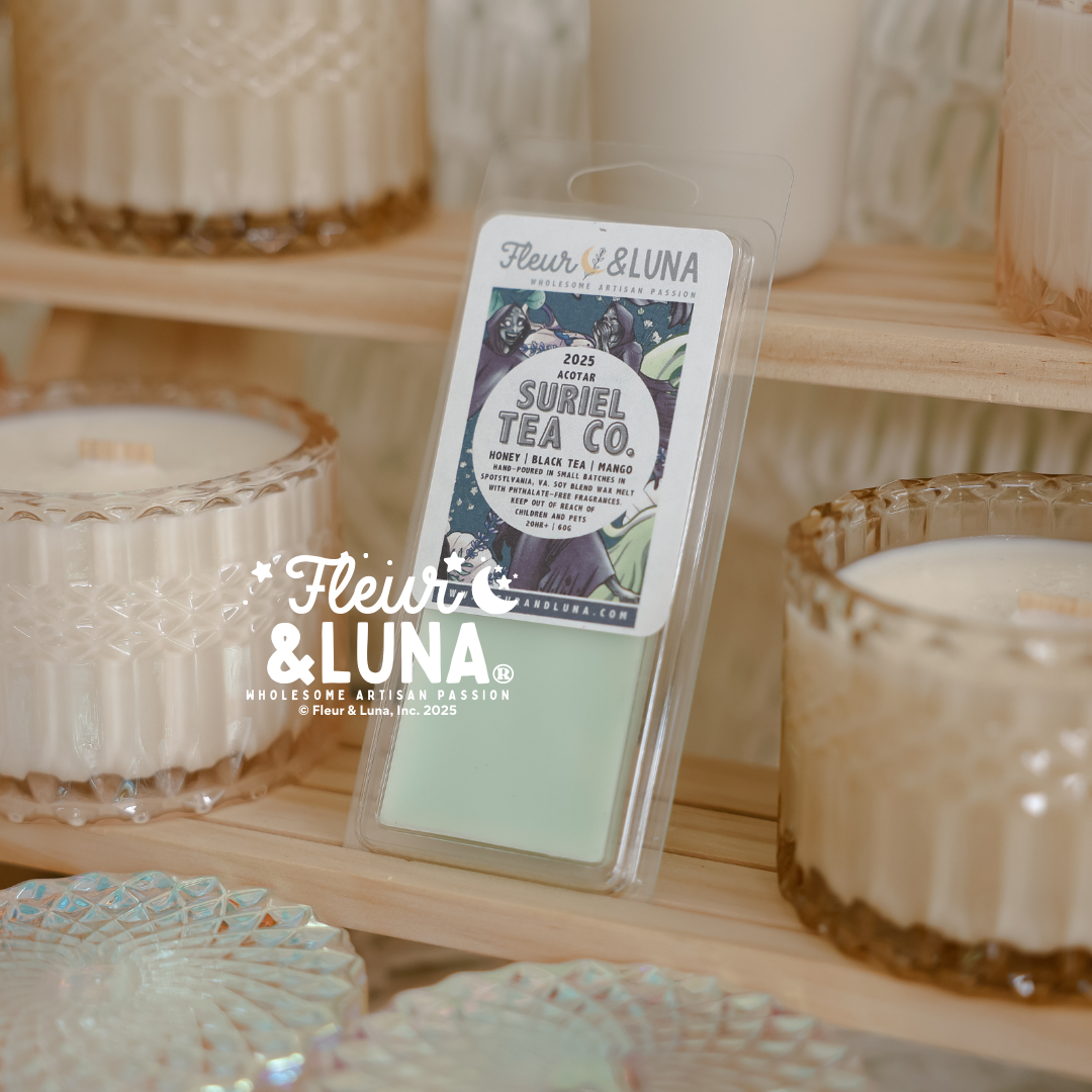 All waxes are made in small batches and hand-poured. Made of natural soy wax and paraffin blend wax, phthalate-free fragrances, ethically sourced mica pigments, & earth friendly sparkles.